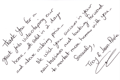 Thank-you for doing a great job videotaping our home. It sold in 2 days and above asking price.